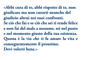 «...Abbi cura di te, abbi rispetto di te, non giudicare ma non curarti neanche del giudizio altrui nei tuoi confronti.