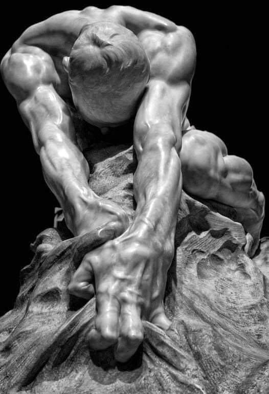 Questa scultura di Gaetano Cellini si chiama “L’umanità contro il male” (1908) e, osservandola, sapete cosa mi ha incuriosito?